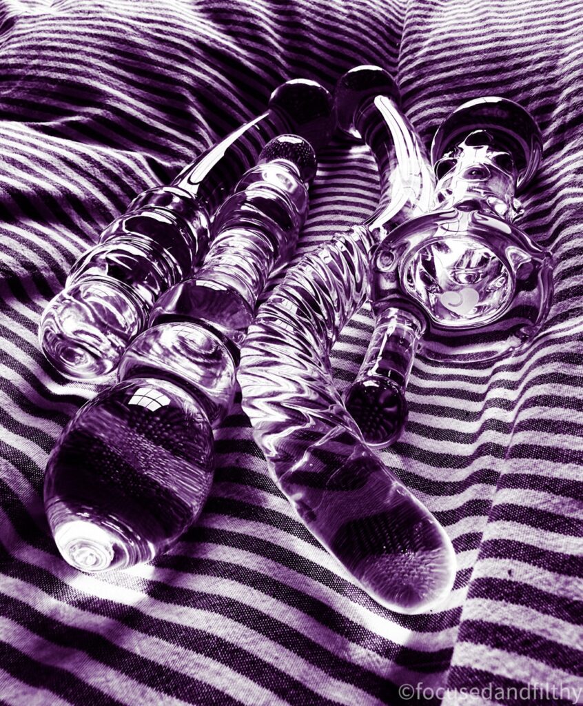 Everyone who’s been a regular to my blog knows how much I love my glass dildos. Here is a selection of just a few of them. I love the hard texture, the coldness and their beauty.